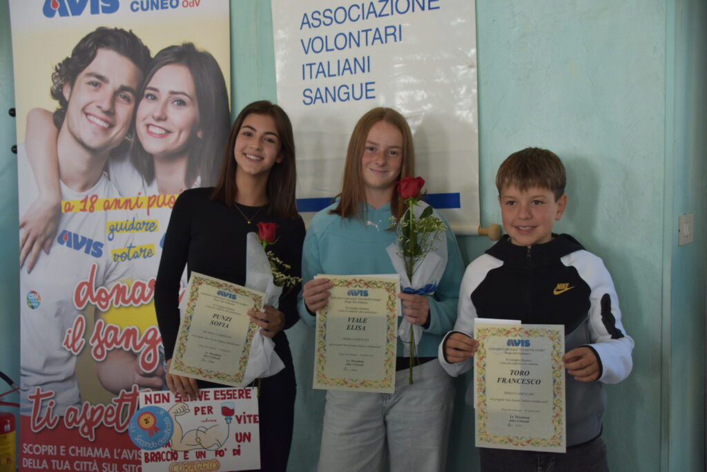 Dopo la Messa, la giornata è proseguita nel salone consiliare con la consegna delle benemerenze ai soci giunti a traguardi significativi, la premiazione dei vincitori delle borse di studio destinate ai figli dei donatori e la premiazione dei vincitori del concorso “Cultura e solidarietà” che ha visto ai primi tre posti Elisa Viale, Sofia Punzi e Francesco Toro (foto sotto).