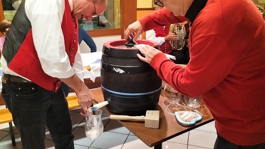 Il momento più atteso è arrivato all’apertura della botte di birra, rito simbolico che segna l’inizio ufficiale della festa. Tra gli applausi e l’entusiasmo generale, l’esclamazione tradizionale “O’zapft is!” (è stappata!) ha risuonato nel salone, seguita dal brindisi corale “Ein Prosit der Gemütlichkeit!”, un invito alla convivialità e alla serenità.