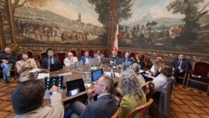 Al tavolo della Sala Giunta, giovedì pomeriggio, l’assemblea generale della Rete: oltre al Comitato esecutivo e osservatori del consolato del Giappone in Francia, si sono collegati da remoto anche rappresentanti di Greer SC (Canada), Magog (Canada), Kremenchuk (Ukraine), Regensburg (Germania), Vitoria (Spagna), Maebashi (Giappone). Durante l’assemblea sono state presentate le attività della Rete nei 12 mesi passati e sono state illustrate le linee di fondo dell’assemblea 2026 della Rete. L’incontro cuneese del Comitato, infatti, è stata una tappa preparatoria verso la 5° assemblea della Rete che la città di Cuneo ospiterà dal 5 al 9 ottobre 2026.