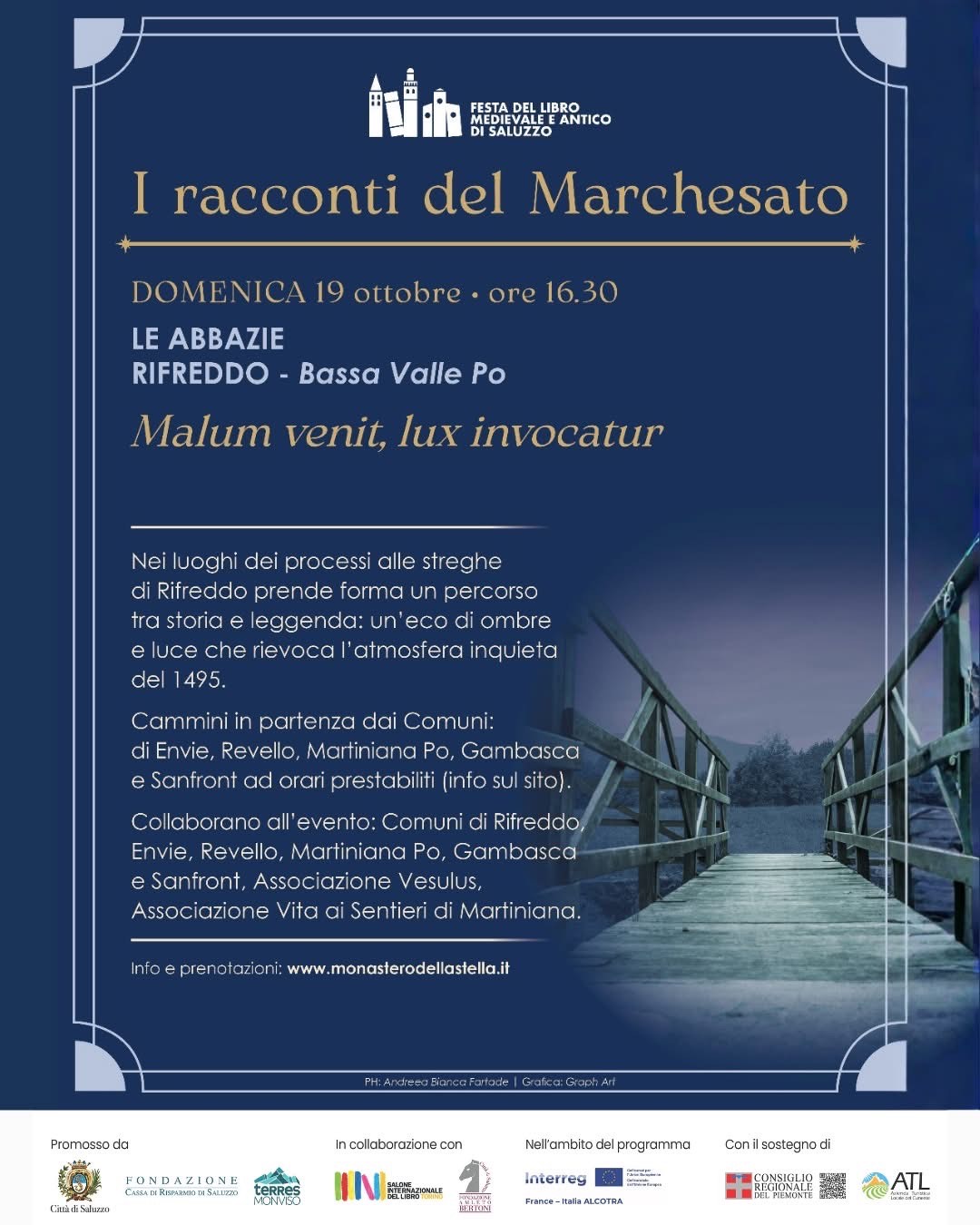 Domenica 19 ottobre, alle 16.30, a Rifreddo prende forma “Malum venit, lux invocatur”, terzo appuntamento del ciclo “Le Abbazie” nell’ambito della Festa del Libro Medievale e Antico di Saluzzo.