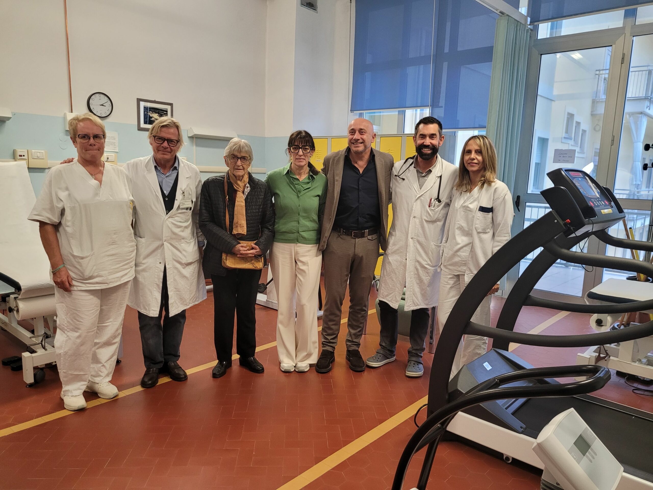 Con il contributo della Fondazione CRC e della donazione della Famiglia Ferrato, in ricordo di Marco (presenti la madre e la moglie), sono stati acquistati cicloergometri e un tapis roulant utilizzati da pazienti affetti da malattie croniche respiratorie durante le sedute di riallenamento.