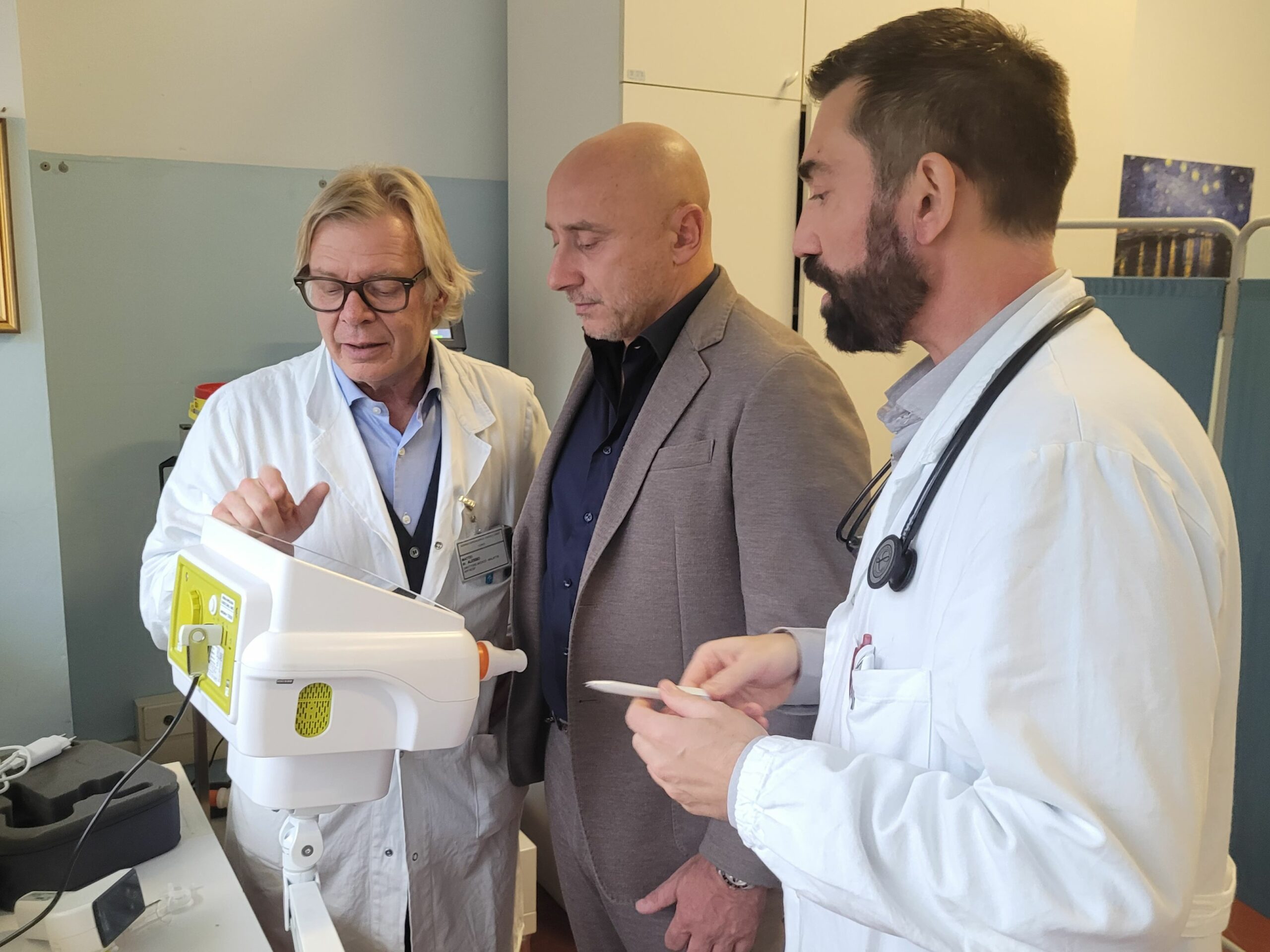 Inoltre, in occasione del ventennale dalla sua fondazione e in ricordo dello specializzando Maurizio Meinero, l’associazione RE.LI.FE Odv ha donato un’apparecchiatura di ultima generazione per la misurazione della funzione respiratoria in grado di determinare, tramite la tecnica delle oscillazioni forzate, parametri funzionali importanti per il follow-up e la risposta terapeutica dei pazienti pneumologici presi in carico dall’ospedale.