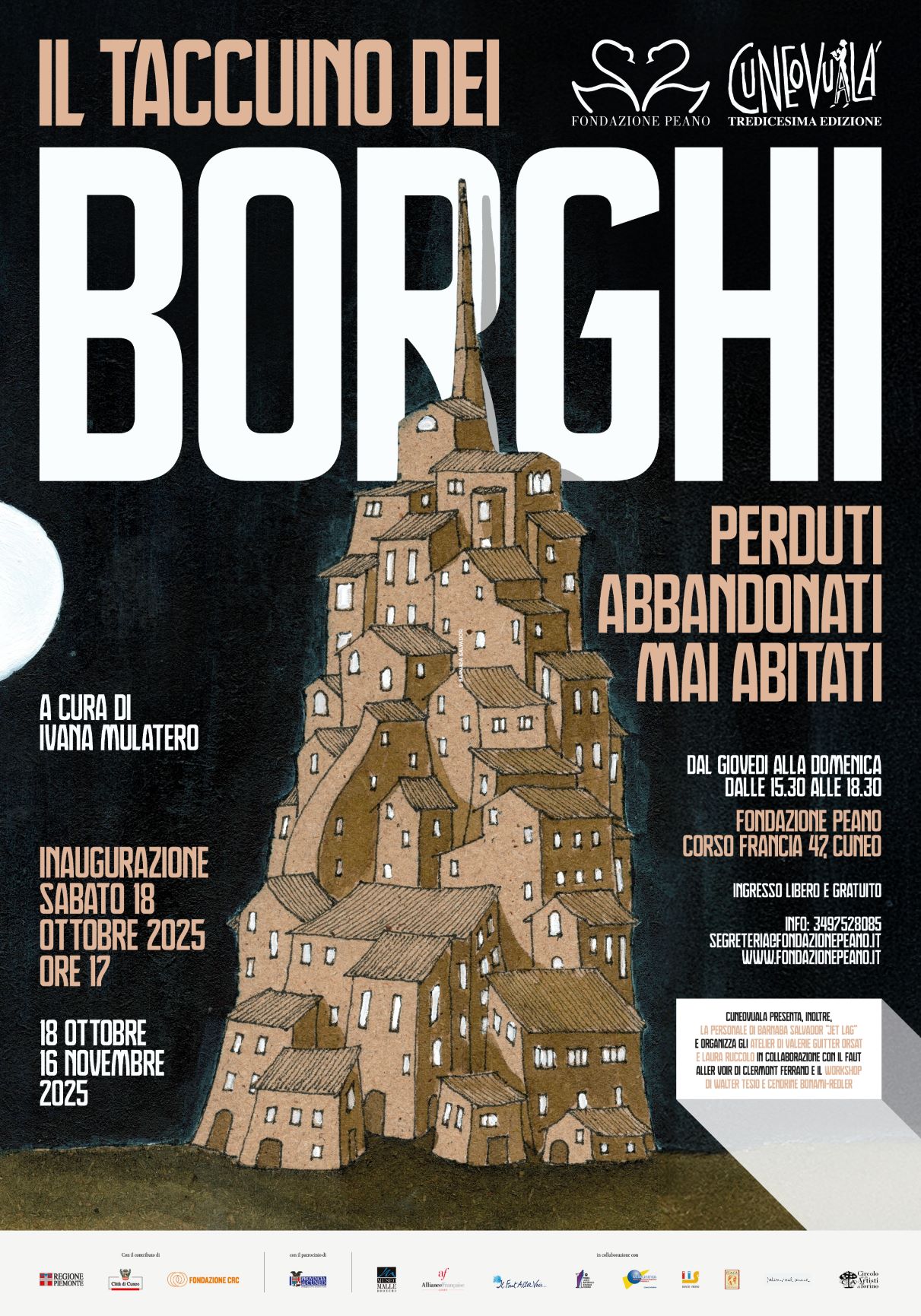 Il tema scelto per l’edizione di quest’anno è “Il taccuino dei borghi”, che si declinerà attraverso l’esposizione di carnet mai esposti, o poco conosciuti al pubblico, che prestano una specifica attenzione a borghi perduti, abbandonati o mai abitati. Ivana Mulatero, con questa rassegna vuole rispondere ad una percepita necessità di conoscenza di spazi tramite due mostre distinte, entrambe visitabili da sabato 18 ottobre a domenica 16 novembre, dal giovedì alla domenica dalle 15.30 alle 18.30.