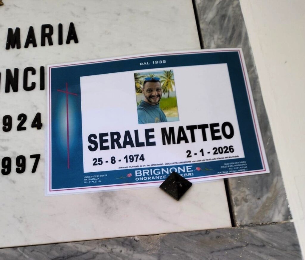 Sabato 31 gennaio, alle 17.30 nella chiesa del Sacro Cuore, verrà celebrata la Messa in suo suffragio: Matteo Serale, 51 anni compiuti lo scorso 25 agosto, è deceduto all’estero il 2 gennaio scorso. Si occupava di ospitalità in Thailandia, nella zona di Phuket. Lascia i genitori Vanna ed Ezio, la compagna Raquel, le sorelle Francesca e Chiara, i nipoti Francesco e Ludovico. Le ceneri riposano nella tomba di famiglia, nel cimitero di San Rocco Castagnaretta.