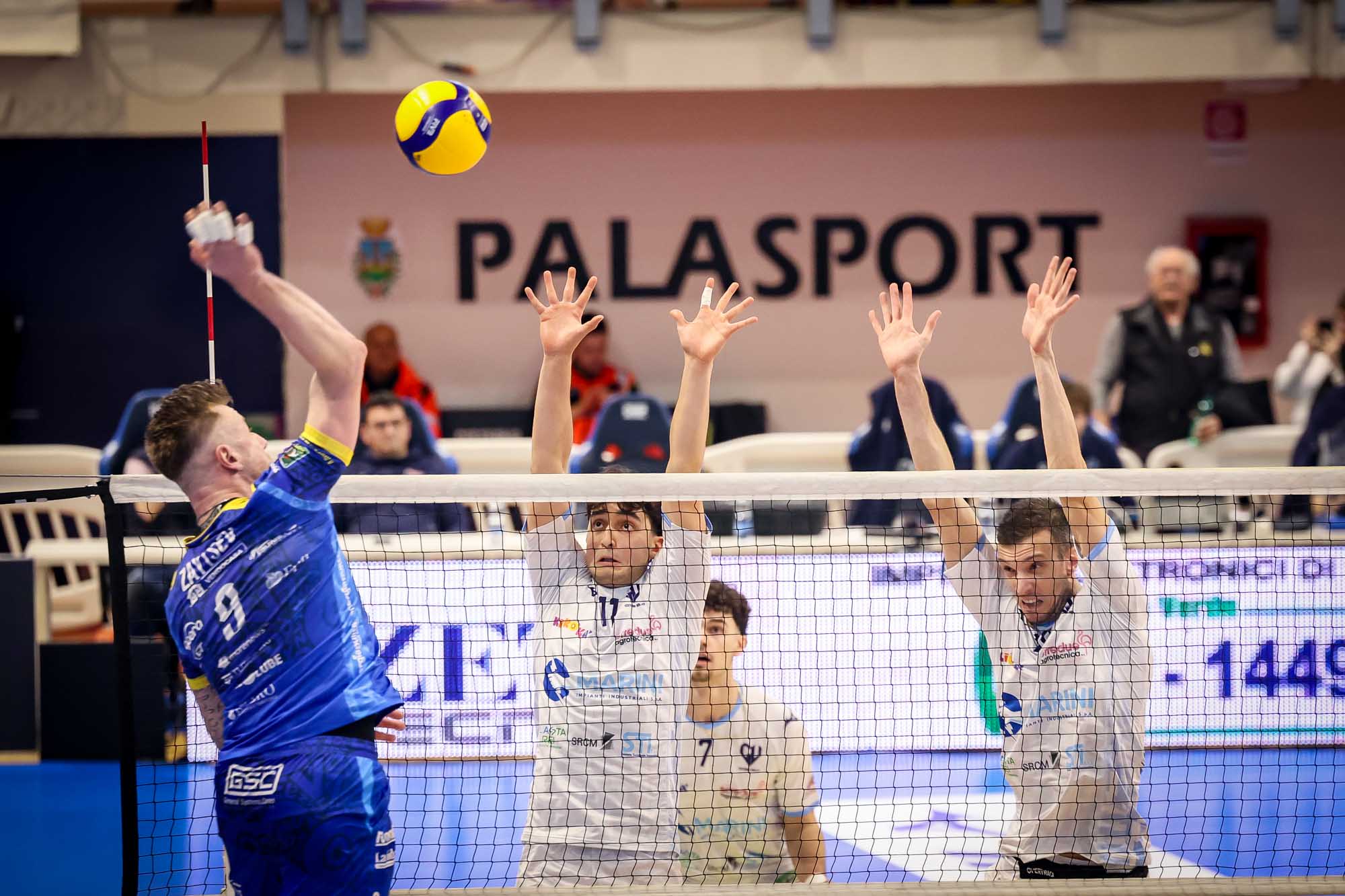 I biancoblù faticano soprattutto in attacco nei primi due set, per poi provare invano a recuperare nel terzo.