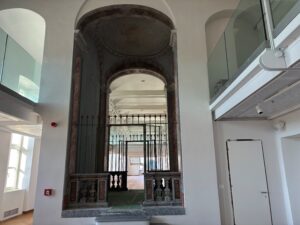 Il cantiere Palazzo Santa Croce ha aperto le sue porte giovedì 2 aprile, a un sopralluogo, guidato dagli architetti Flavio Bruna e Saverio Isola, dello studio Isolarchitetti, nell’ambito dell’incontro avvenuto nella sala de La Guida per la rassegna “Racconti di architettura e paesaggio alpino 2026”. I lavori per il recupero dell’ala del grande edificio destinato a diventare la sede della nuova biblioteca civica sono in dirittura d’arrivo e a breve inizierà anche la fase di allestimento degli arredi, prima del trasloco vero e proprio dei libri dall’attuale sede della biblioteca in via Cacciatori delle Alpi, previsto a partire da giugno.